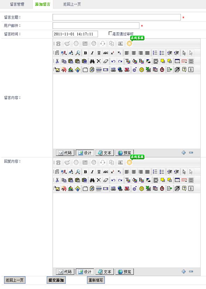 6.在“回復內容”字段,可以在線編輯您留言回復內容。