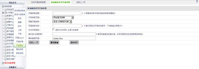 左則菜單管理>鼠標右鍵>頁面模塊>頁面參數管理>添加新的頁面參數,如下圖