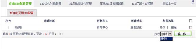 在“所有的頁面SEO配置”列表中顯示網(wǎng)站內(nèi)有配置SEO的頁面列表,在列表里可以修改、刪除頁面的SEO配置。